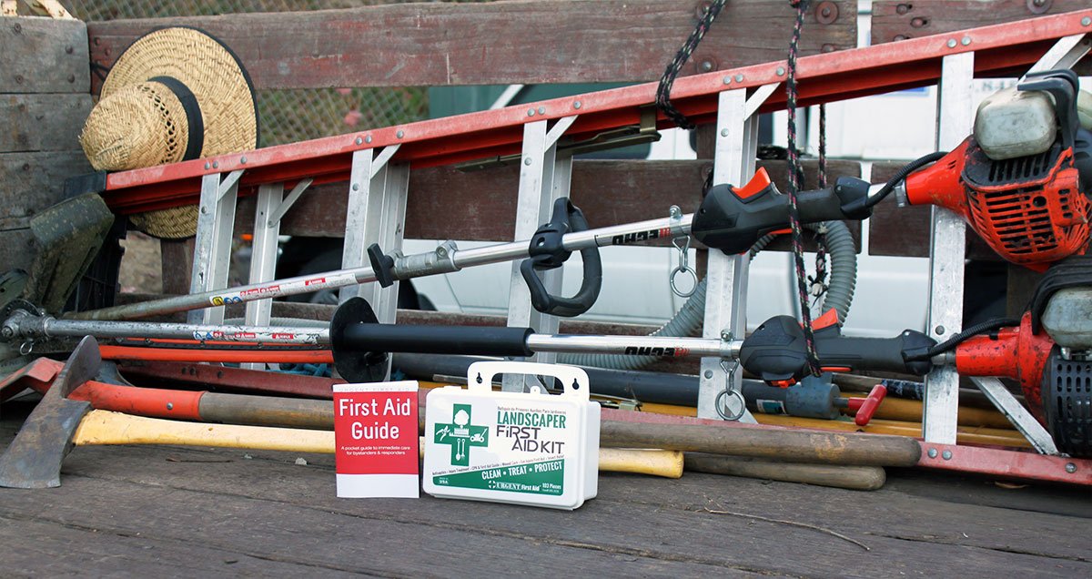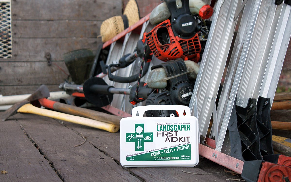 With our new, updated 103-piece, 10-unit landscaper's first aid kit, you're prepared to face the outdoors. Keep this kit within easy reach and treat insect stings, minor cuts, sprains and eye irritations. Products are contained in a sturdy plastic case with gasket. Designed to keep workers safe in landscaping and tree-trimming work, and a big hit with home gardeners, too!